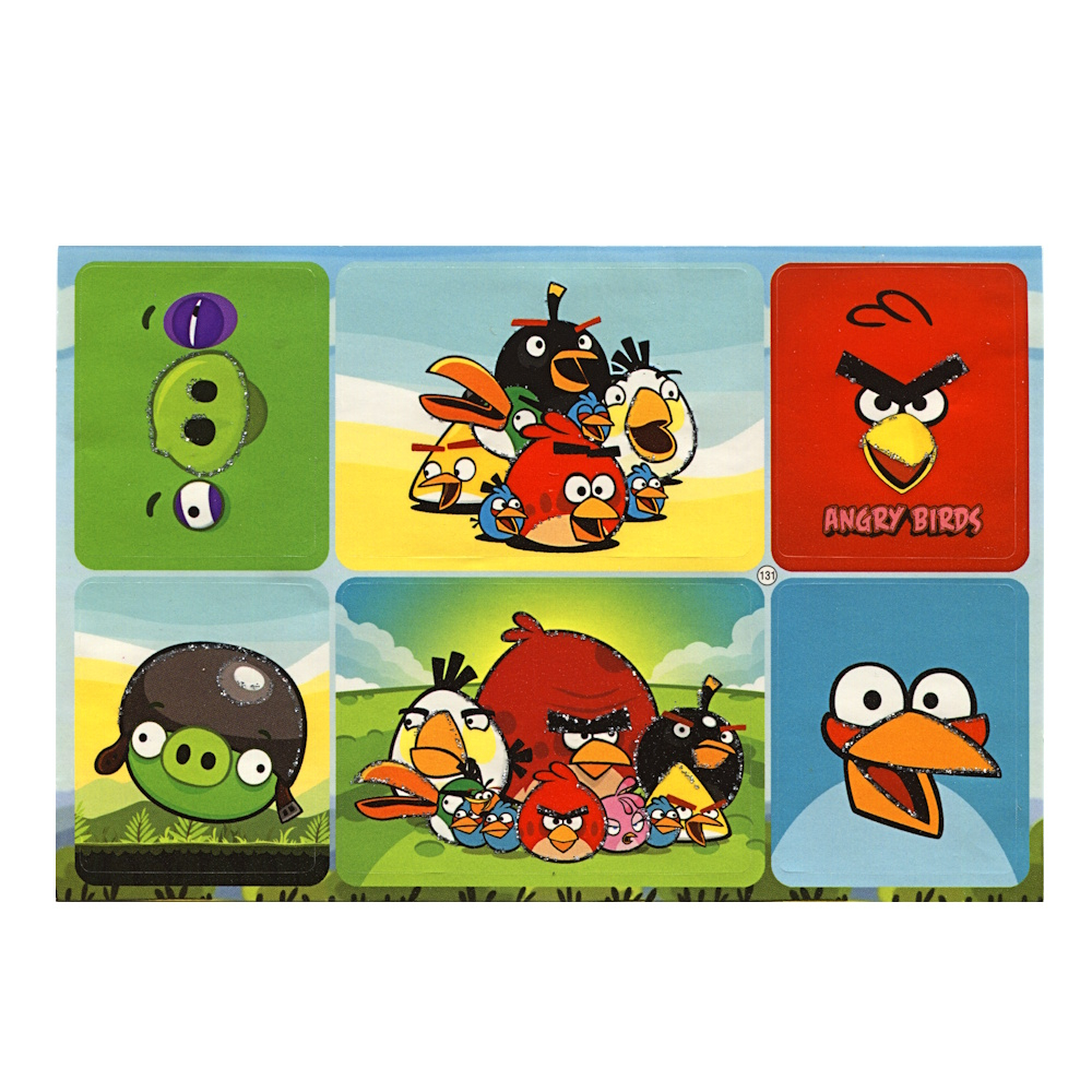 Наклейка (Angry Birds, на аркуші 6 штук, лист 10*15 см.)