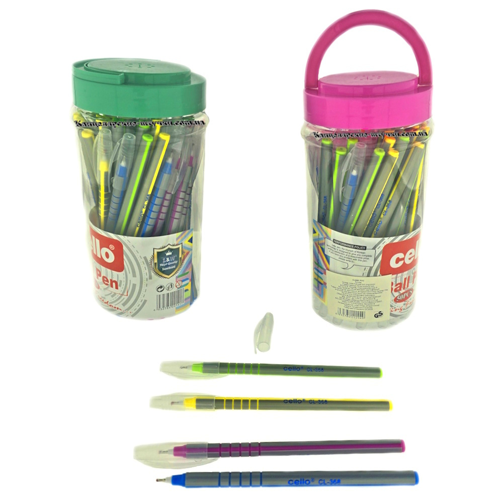 Масляна ручка призначена для повсякденного письма в школі, офісі та вдома. Масляне чорнило забезпечує рівну подачу і чітку лінію без пропусків. Корпус виконаний з міцного пластику, має зручну рифлену зону захвату, завдяки чому ручка комфортно лежить в руці при тривалому використанні. Ручки упаковані в пластикову банку з кришкою і ручкою для перенесення — зручно для зберігання і колективного використання.